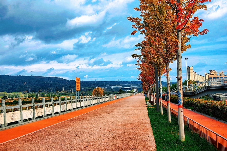 張寶龍攝影:葉紅知秋意 楓染彬州堤